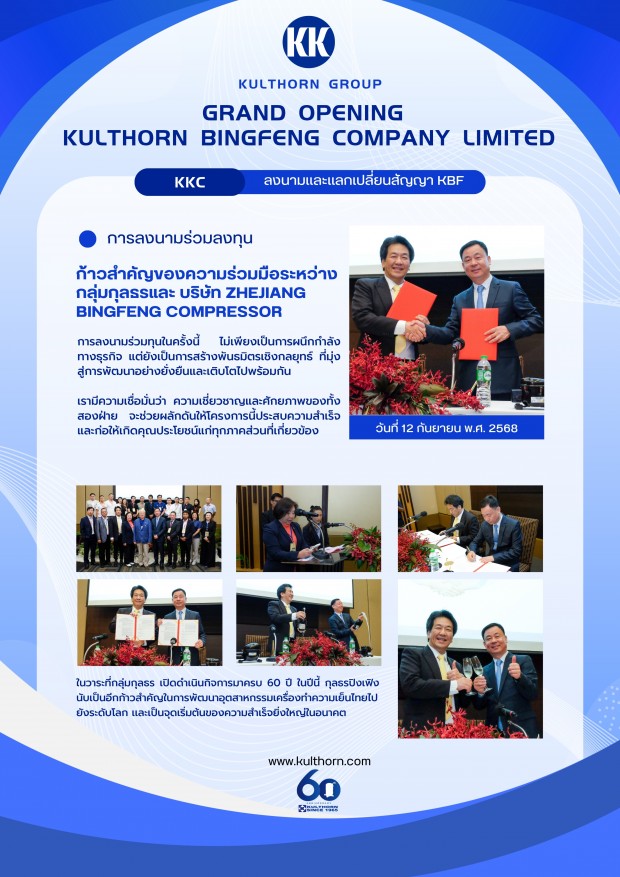 ในวาระที่กลุ่มกุลธร เปิดดำเนินกิจการมาครบ 60 ปี ในปีนี้ กุลธรปิงเฟิงนับเป็นอีกก้าวสำคัญในการพัฒนาอุตสาหกรรมเครื่องทำความเย็นไทยไปยังระดับโลก เเละเป็นจุดเริ่มต้นของความสำเร็จยิ่งใหญ่ในอนาคต